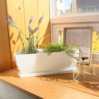 플라팜 직사각 화분 + 받침 세트, 화이트, one size, 1개