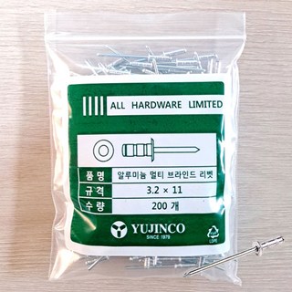 YUJINCO 리벳트 못 블라인드 멀티 알루미늄 리벳 3.2x11mm 1봉지(200개), 200개