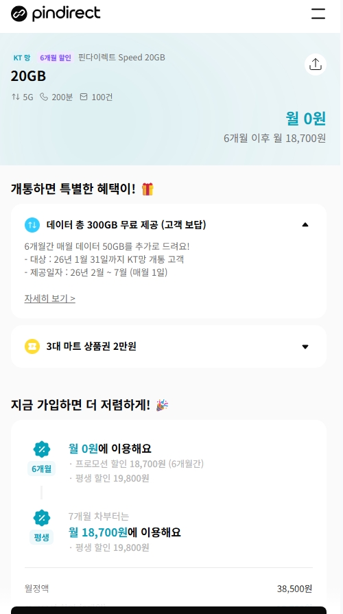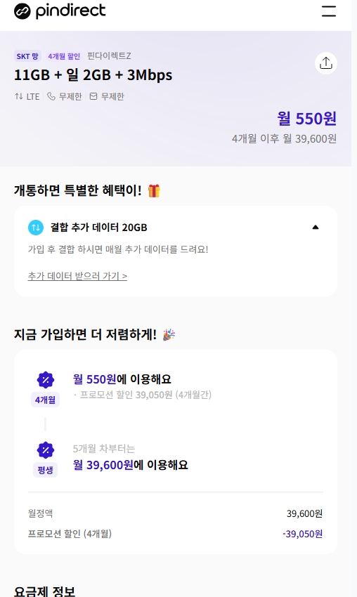 핀다이렉트SK망 120기가+5MPS 1100원, 11기가+2기가+3MPS 550원 KT망 20기가+50기가 0원 알뜰폰/뽐뿌 작성자 정보 관리자 쪽지보내기 메일보내기 자기소개 아이디로 검색 전체게시물 쪽지보내기 메일보내기 자기소개 아이디로 검색 전체게시물 작성 작성일 2026.01.16 19:09 컨텐츠 정보 817 조회 0 추천 0 비추천 목록 본문 무한 통신의 시작 Zhttps://www.yogeum.com/stkt341 0 추천 0 비추천 SNS 공유 관련자료 링크 https://www.yogeum.com/stkt341 228 회 연결 이전 핀다이렉트KT 20기가(2월~6개월간 50기가제공) + 바로유심 2만원 상품권 110원 총 70기가 작성일 2026.01.24 00:19 다음 알뜰폰) SK 알뜰망 100기가 5MPS 3300원 , 11기가+2GB+3MPS 2200원 작성일 2026.01.05 22:00 댓글 0 등록된 댓글이 없습니다. 로그인한 회원만 댓글 등록이 가능합니다. 목록